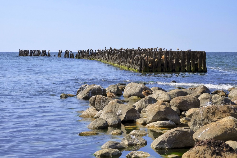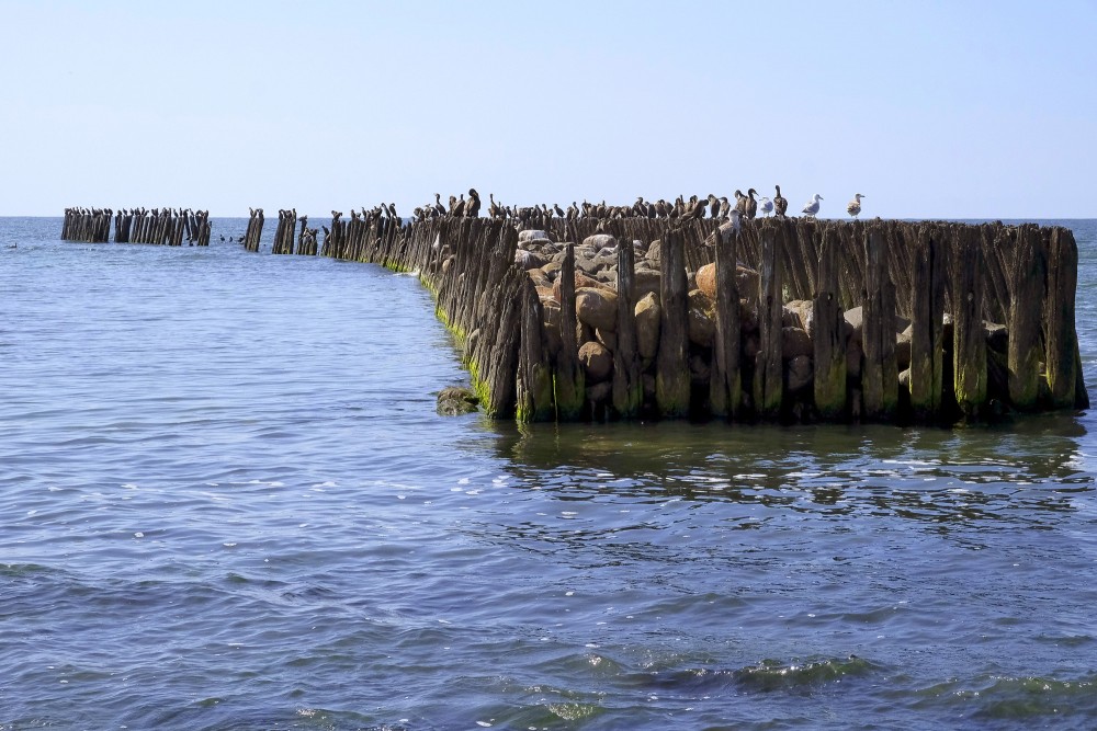 Vecie koka steķi: Atrodas nedaudz tālāk uz ziemeļiem. Tie ir ar akmeņiem pildītas koka konstrukcijas, kas, iespējams, vēsturiski kalpoja kā papildu viļņlauži vai krasta aizsardzības elementi.