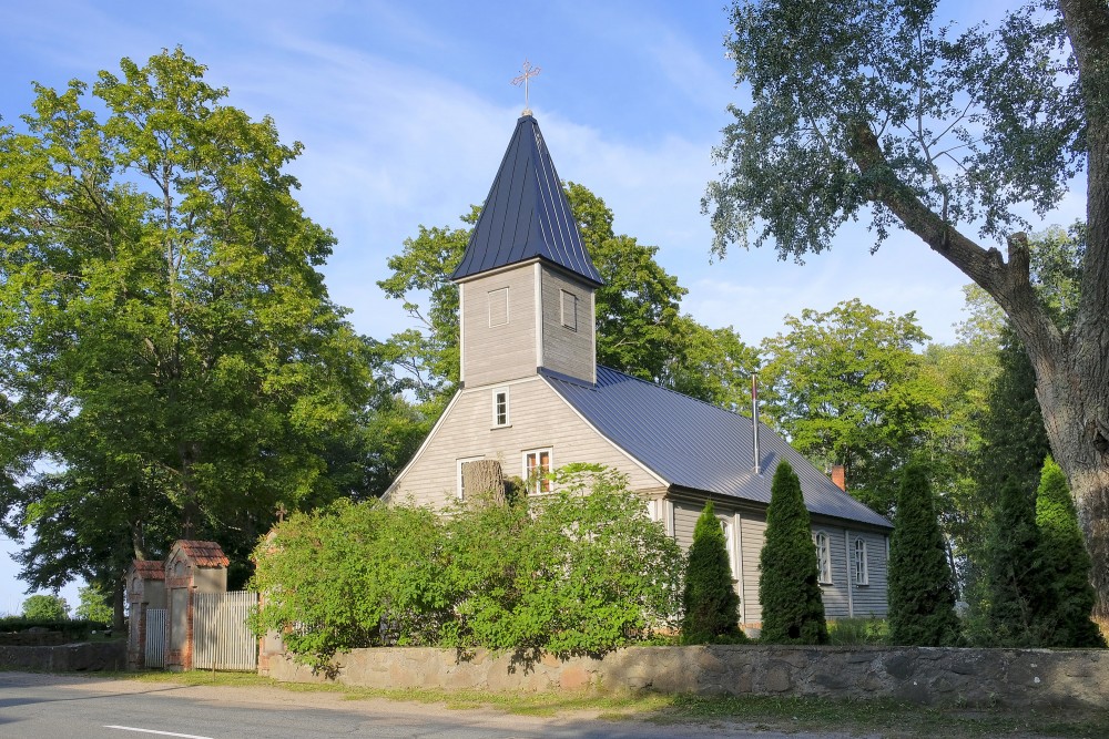 Viena no retajām koka baznīcām Latvijā, kura nav nopostīta vai pārbūvēta par mūra baznīcu, tās pirmsākumi meklējami jau 1567. gadā, vairākkārtīgi pārbūvēta, pēdējo reizi 1804. gadā. 1851. gadā baznīca ieguva Johana Leberehta Eginka gleznoto altāra gleznu "Kristus un neticīgais Pēteris uz jūras". Savukārt 1853. gadā jaunu altāri un kanceli, bet 1854. gadā – Hermaņa darbnīcā Liepājā būvētās ērģeles, no Vācijas ieceļojušais ērģeļmeistars – Kārlis Bitners. Pēc Pirmā pasaules kara baznīca, arī ērģeles, bija stipri izpostītas.