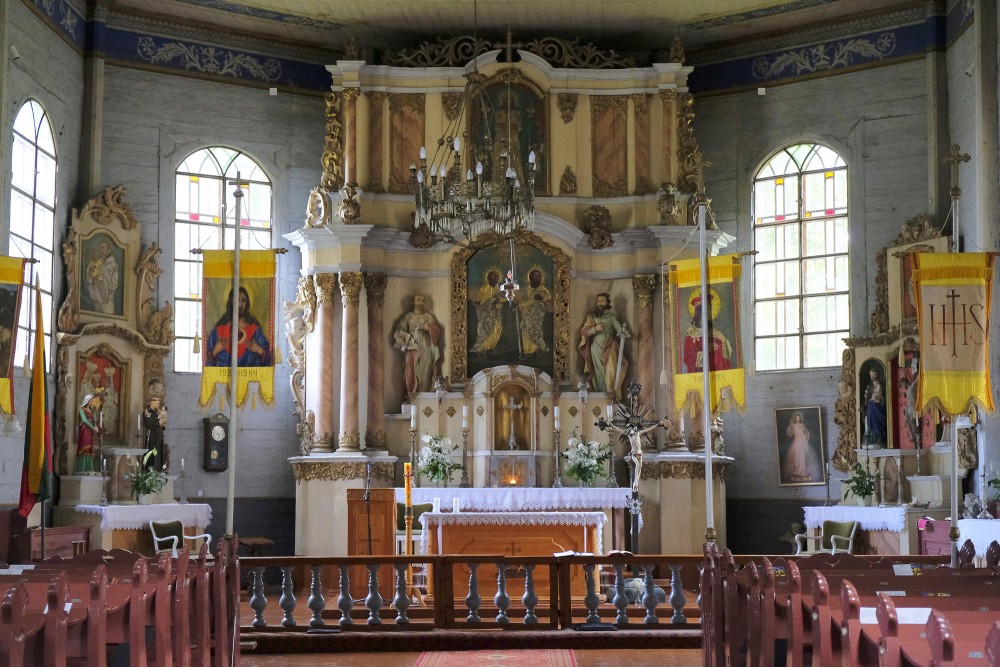 Baznīca ir īpaša arī ar to, ka tajā saglabājušās vērtīgas 18. gadsimta relikvijas un liturģiskie priekšmeti – piemēram, senas gleznas un garīdznieku tērpi. Vienā no kapelām atrodams rokoko stila kristāmtrauks ar dekoratīvu vāku, kas tiek minēts kā viens no ievērojamākajiem interjera elementiem.