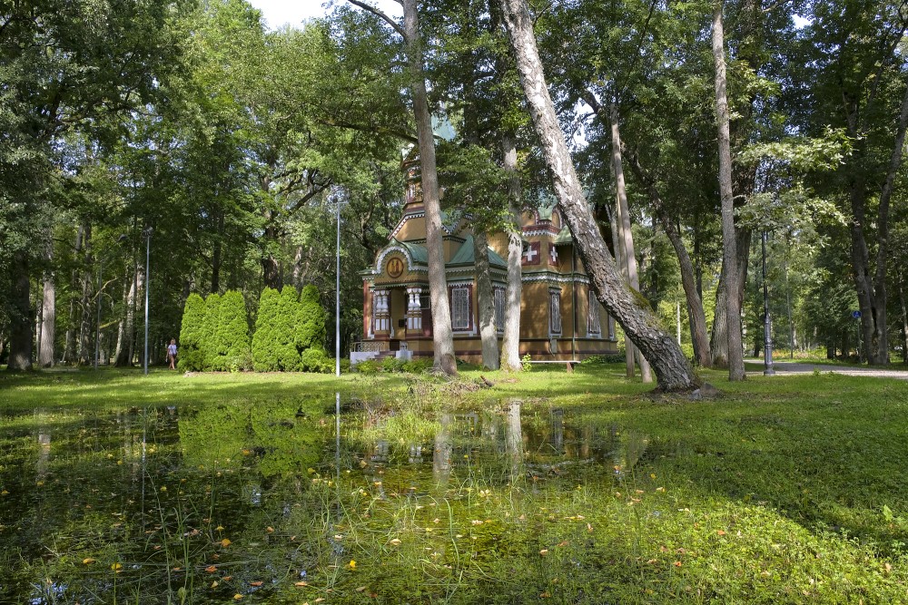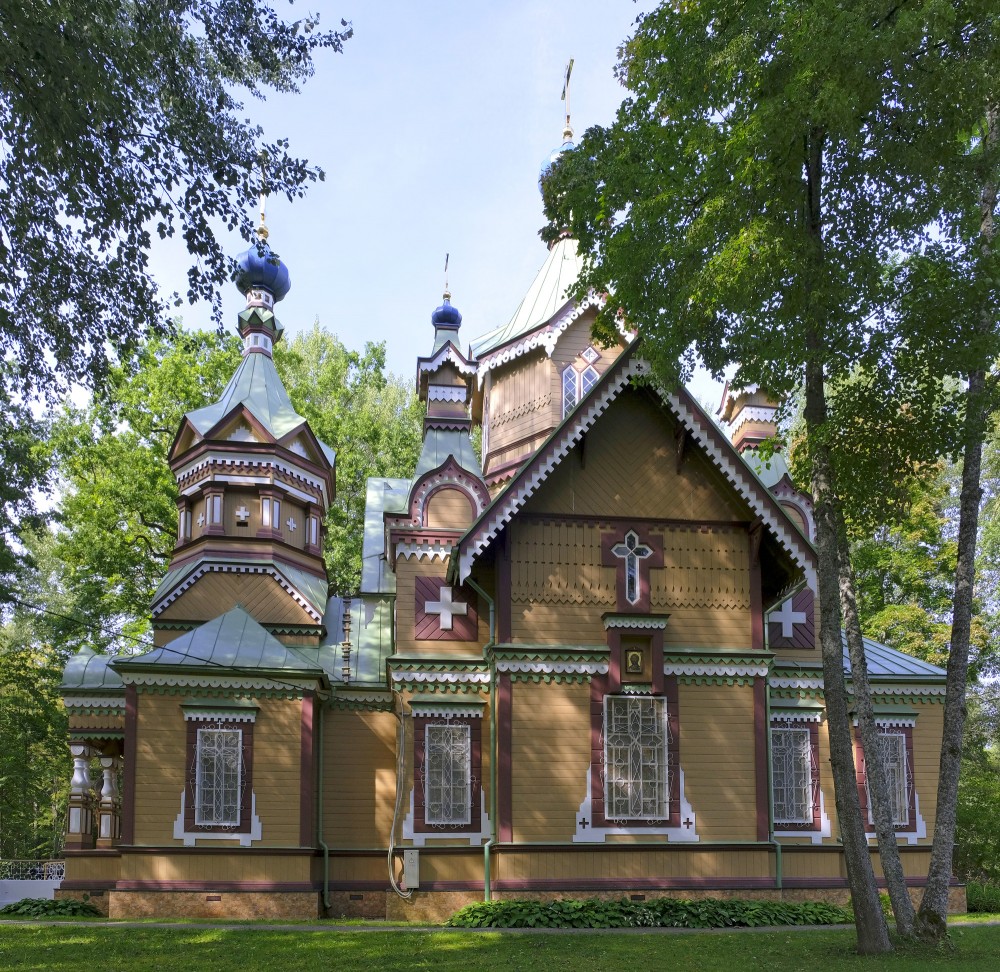 Sv. Pētera un Sv. Pāvila pareizticīgo baznīca. Krusta kupola celtne ar centrālo un četriem stūra kupoliem. Fasādē redzams bagāts kokgriezumu dekors. Baznīca celta no koka 1893. gadā, arhitekts Vladimirs Lunskis. Šī ir vecākā Ķemeru baznīca, kas pēc nostāstiem ir celta bez nevienas naglas.