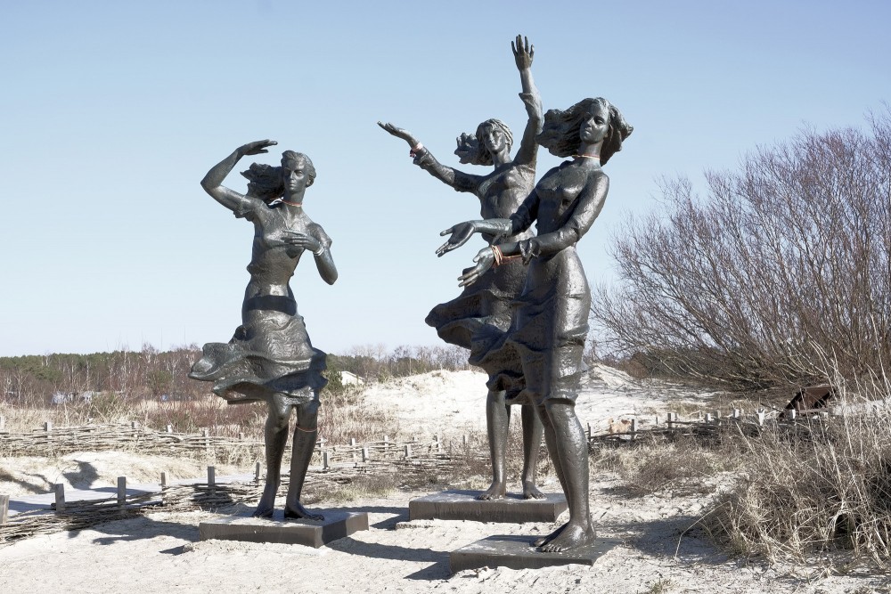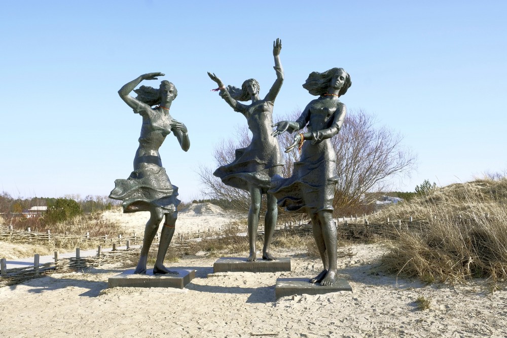 Šo monumentālo darbu 1982. gadā radīja slavenā lietuviešu tēlniece Zuzana Pranaitytė. Skulptūra tika uzstādīta laikā, kad Šventājas osta piedzīvoja pārmaiņas, un kopš tā brīža tā ir kļuvusi par neiztrūkstošu pilsētas ainavas sastāvdaļu. Māksliniecei ir izdevies meistarīgi notvert figūru kustību — vējš it kā plivina meiteņu matus un apģērbu, radot dzīvīguma sajūtu pat smagajā bronzā. Interesanti, ka skulptūra ir kļuvusi par iecienītu orientieri un tikšanās vietu gan vietējiem iedzīvotājiem, gan tūristiem.